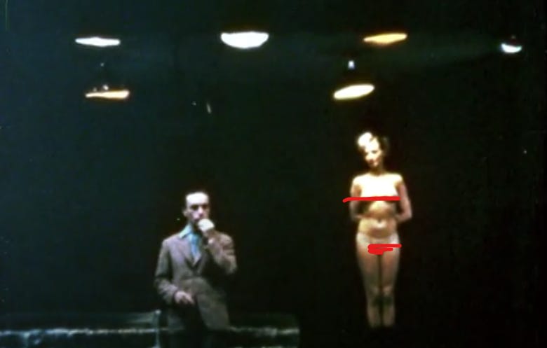 Although promoted as a family event, there was a surprising amount of needless nudity - and remember, this was at a time when family values were still wholesome and pornography was hugely frowned upon. Women were expected to dress presentably but, while this was going on, the Sex Ed PSYOP was coming to fruition - a ploy to destroy America from within. So it was important to get people, especially children, accustomed to public indecency and the World’s Fairs were a great tool: