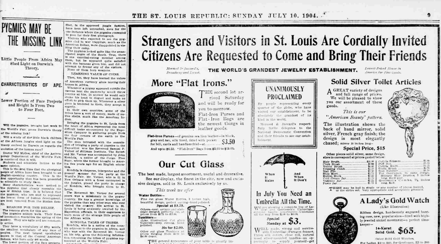 It was at this same fair that “The Negritos” and Pygmies were marketed as the “missing link” between humans and apes and the media was more than happy to push this idiotic nonsense as Science.