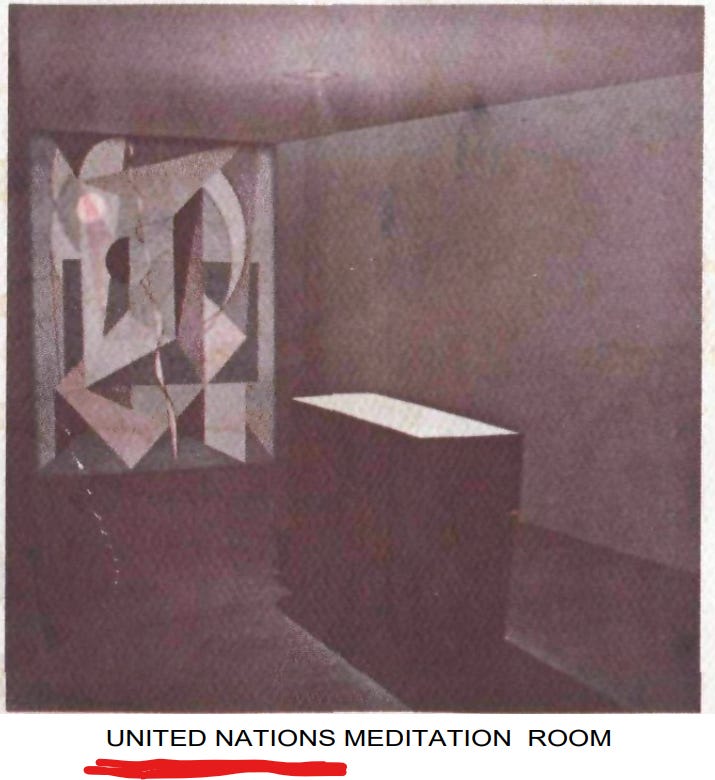 There’s a whole lot more rabbit hole on Lucis Press, Lucis Trust, the Obelisks that are all over the world, the Caduceus, the Rod of Asclepius, Hermes, the underworld and more, but being that this article was about the Meditation Room, we will discus that crazy sh*t a different day. In the meantime, here’s who designed the meditation room: https://en.wikipedia.org/wiki/Dag_Hammarskj%C3%B6ld