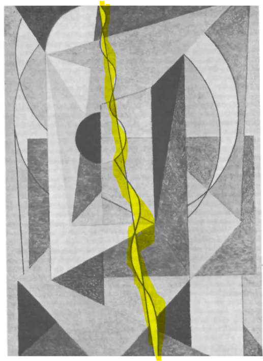 “Cubist art is an effort to produce certain psychic effects obtainable by optical illusion”, it is a Psychological Operation that sees no value in beauty. The Psychologist goes on to state, “The Cubist school is not the realm of art at all. It belongs to that of medicine and science” … "A mind that is positive cannot be controlled. For the purposes of occult dominion minds must therefore be rendered passive and negative in order that control can be achieved. Minds consciously working to a definite end are a power, and power can oppose power for good or for evil. The scheme for world dominion might be doomed by the recognition of this principle alone, but, as it is unfortunately unrecognized, it remains unchallenged." … so, the dumb art is an ode to confusion, an ode to the occult and hence, an ode to Lucifer with a splash of hidden symbolism. One such symbol in this piece is of utmost importance and likely the entire reason this art was crafted for this very special room where very special people go… to meditate.