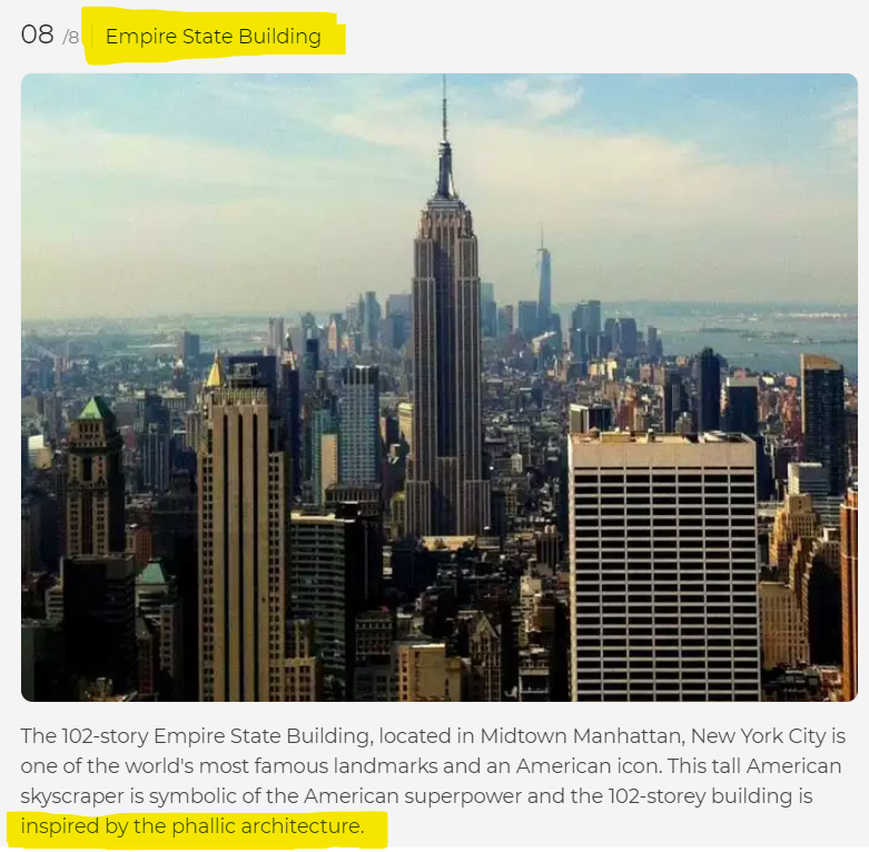 Oh, and by the by, the Empire State Building resembles a hypodermic needle. Mind you, so does a phallus, hence we currently exist within a world civilization practicing a religion that sacrifices its victims via needle rape.
