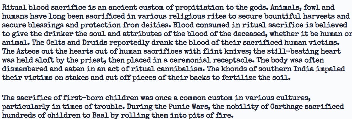 Before we can get into today’s piece, we must quickly look at black magic, sorcery, witchcraft and blood rituals. I promise this will get really interesting after we get past this part and I promise everyone who reads this will leave with a couple new nuggets of truth. I can tell you that researching this left me with more nuggets than a McDonalds. If you didn’t read Part 1, Foot Soldiers of Scientism, you might want to start there. You’ll end up right back here in 20 minutes. Without further ado, let’s jump in and dive deep…