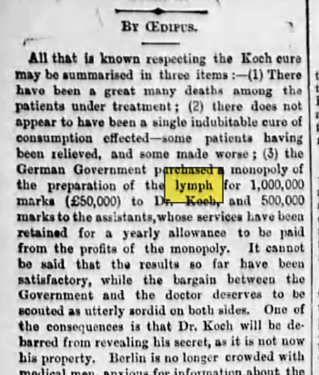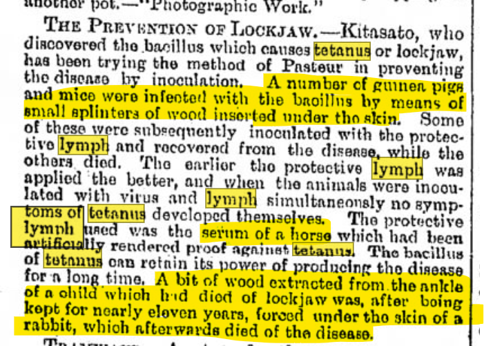 1897 Lymph calves https://www.newspapers.com/image/921188771/?match=1&terms=tetanus%20vaccine