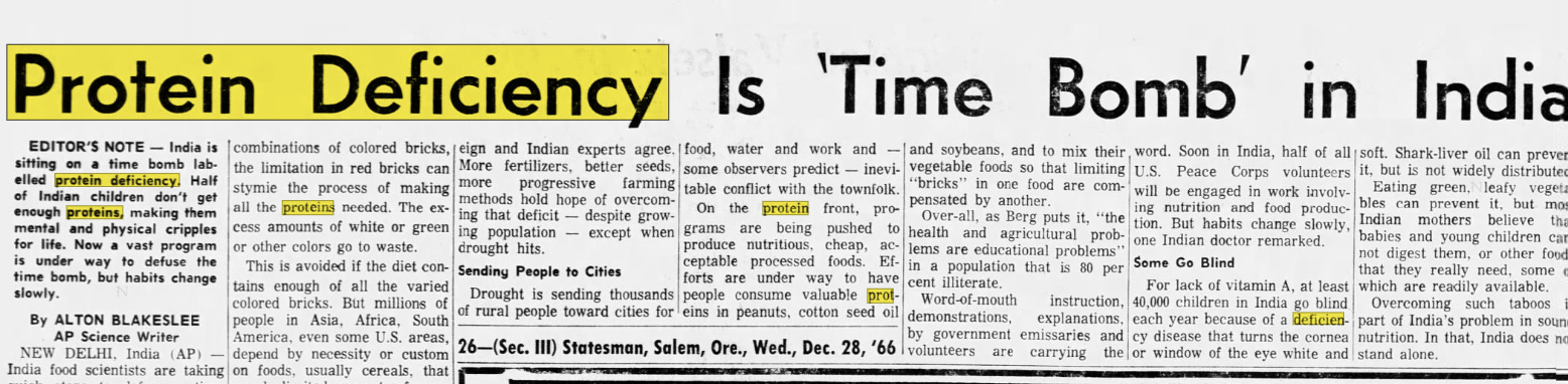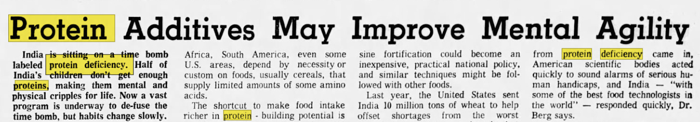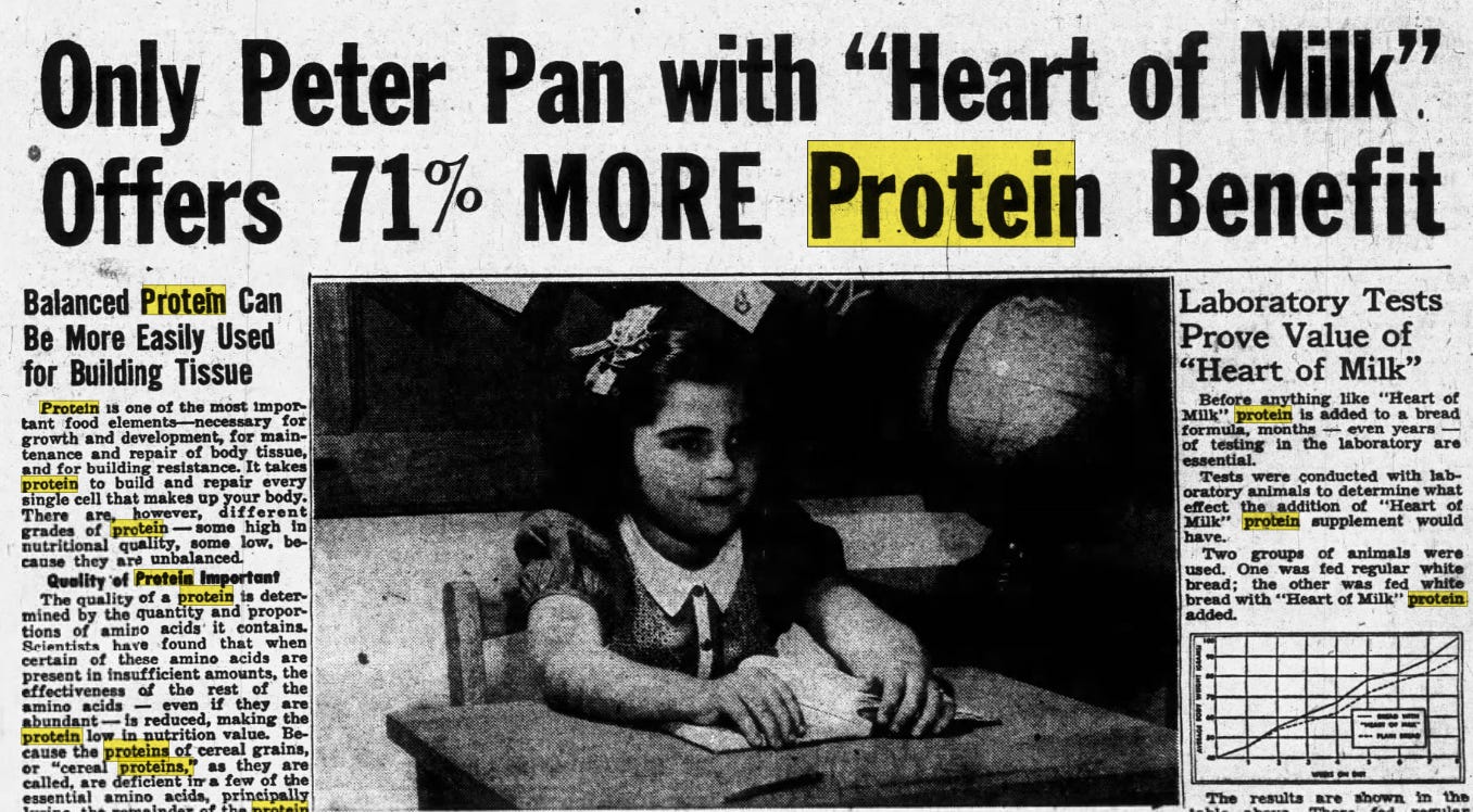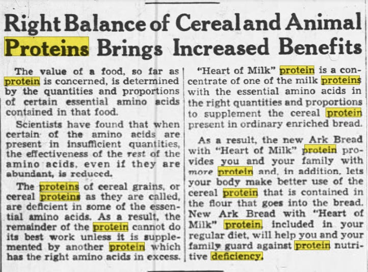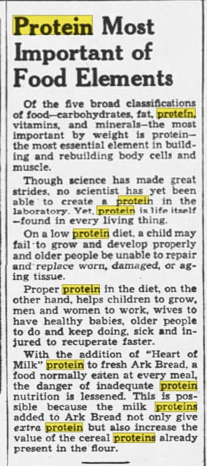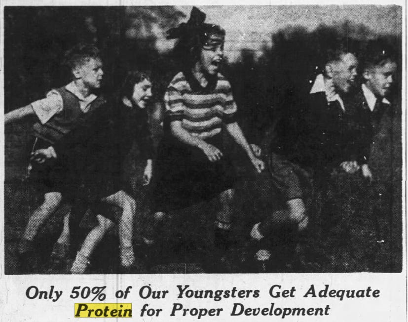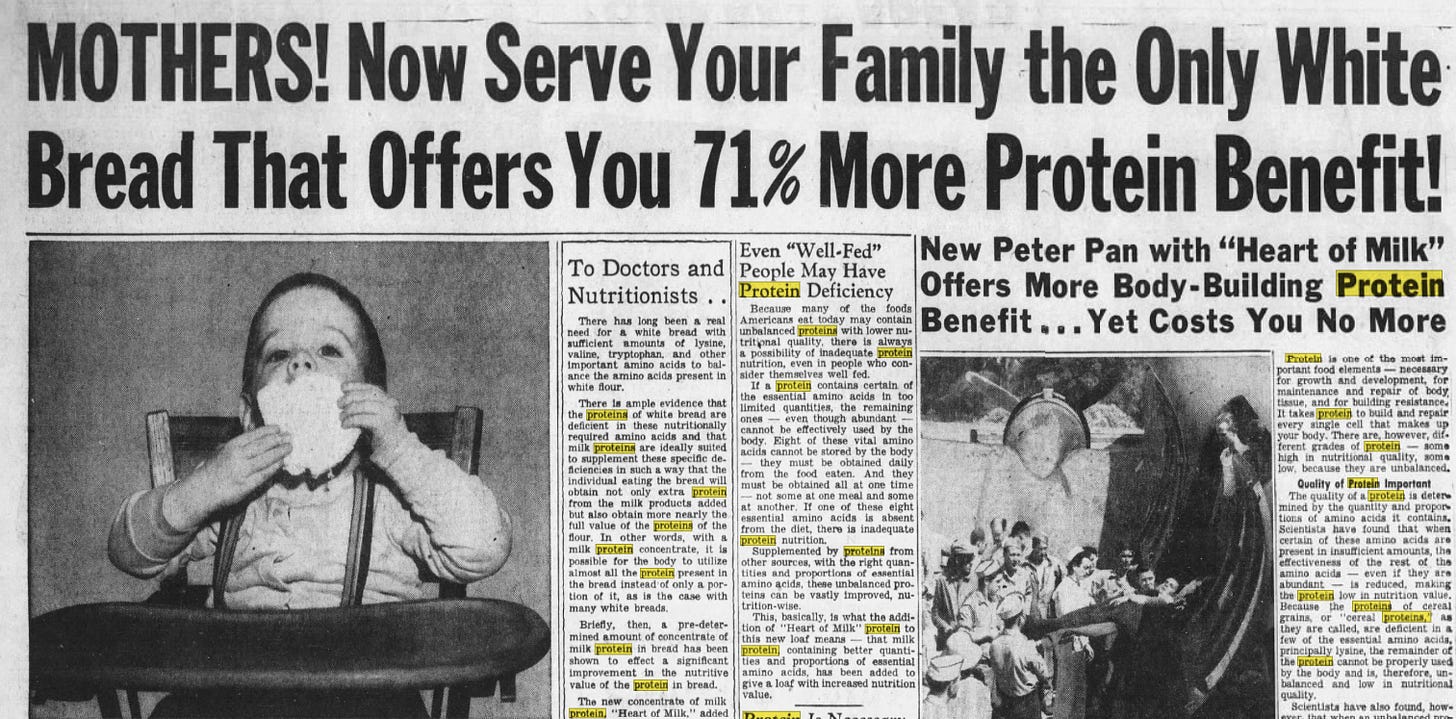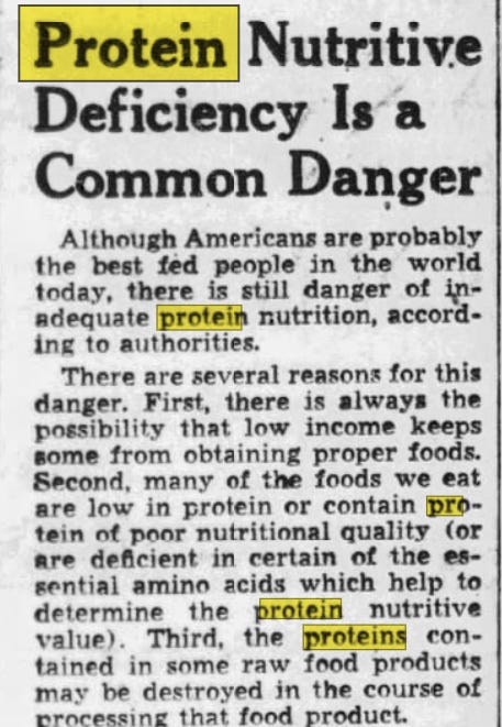 It was official, protein was essential and more protein was always best. The media told people that raw foods no longer contained enough of the stuff hence the reason it was important to supplement. They even claimed a great deal of people had fallen ill due to lack of protein - it was so bad that protein deficiency became “a common danger”.