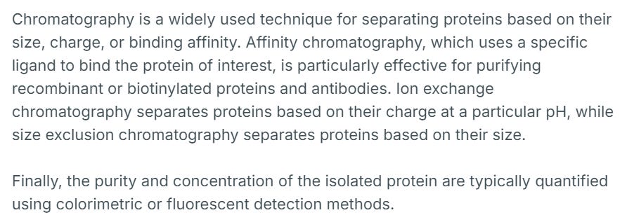 detailed isolation process: https://wou.edu/chemistry/courses/online-chemistry-textbooks/ch450-and-ch451-biochemistry-defining-life-at-the-molecular-level/chapter-3-investigating-proteins/