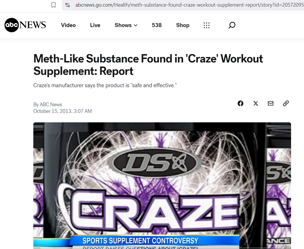 The supplement sellers knew their target market was people who were hitting the gym so, to topple the competition, this time around they began lacing their products with methamphetamine-like substances and other pharmaceuticals. These chemicals made people feel awesome and when people felt great they mistook this for nutrients; they mistook it for health. It didn’t take long for all hell to start breaking loose. Two Welsh athletes, Rhys Williams and Gareth Warburton received four and six-month bans after taking Mountain Fuel supplements laced with steroids. Olympic swimmer Jessica Hardy took Advocare Arginine Extreme to gain muscle mass and it too contained a steroid. People who consumed products like Craze workout supplement were unknowingly being drugged too.