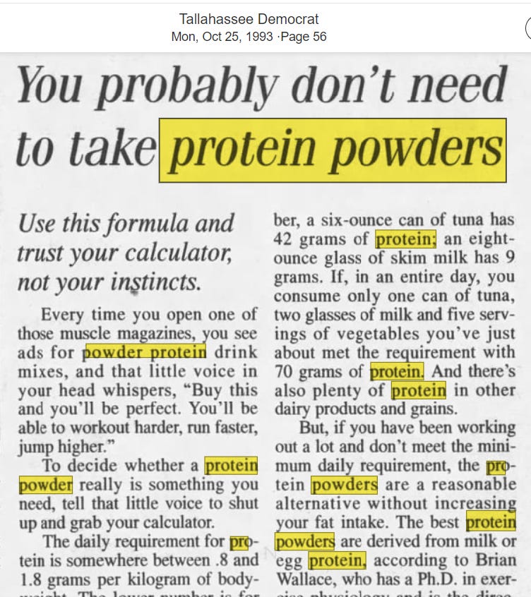 And being that the concept of supplementing protein comes from two dudes, barbells, Hershey’s chocolate and a boating oar, and being that we measure protein based on nitrogen not protein, and being that our protein needs numbers are selected by the World Health Organization who based them on old nitrogen studies, we don’t need to ask the cashier at the local Vitamin Shoppe which powder is best, we need to ask the crazy train to stop so we can exit it.