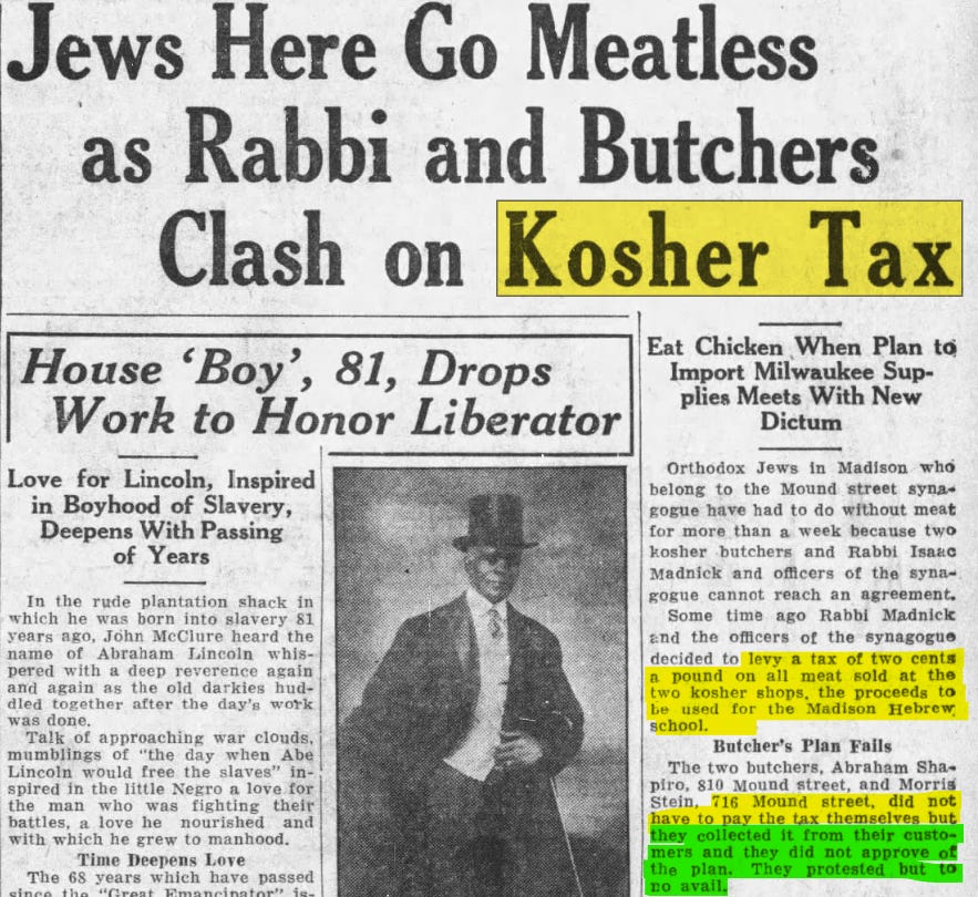 In Wisconsin, Jews were going meatless due to their two-cents-per-pound tax.