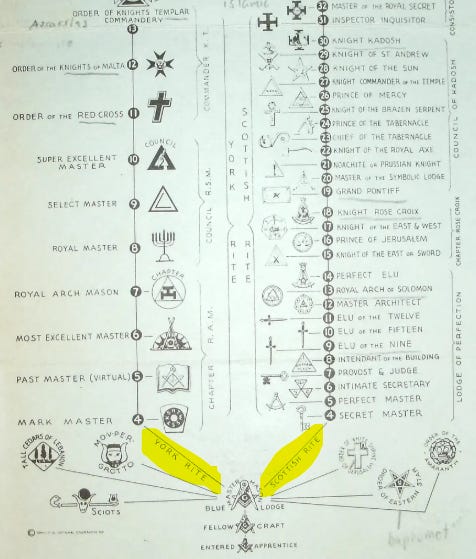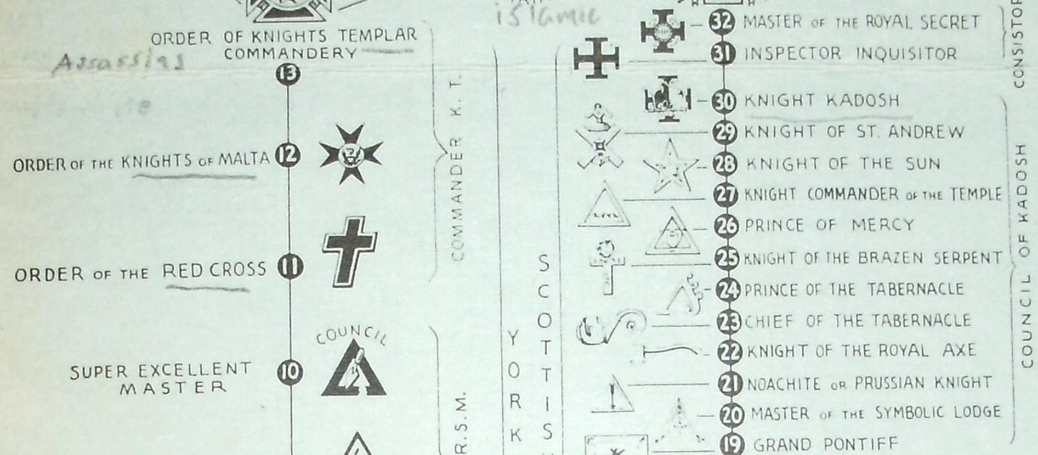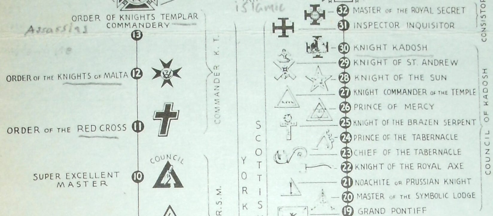 Although my shocking Shriners piece was ready to publish and scheduled to blast out two days ago, I thought why not go back and look into the ranks below it? As I began investigating the ranks, I started realizing something I had not realized before. I unscheduled the piece and started at the beginning. Here’s what I found: