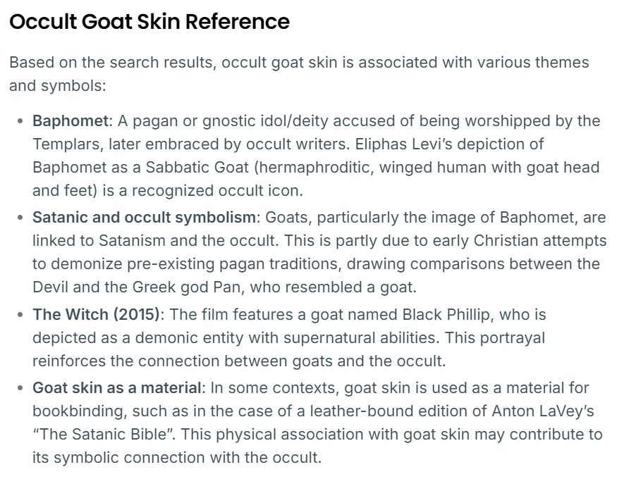 Although it was reported that linen worked fine in terms of the fabric repelling disease, many of the plague doctors chose a different material for their shrouds: goat skin. Do you remember Anton LaVey? He’s the Church of Satan founder-guy who wrote The Satanic Bible. Well, guess what the bookbinding was made from? If you said goat skin, you’re right. Goats are very special to the Satanists.