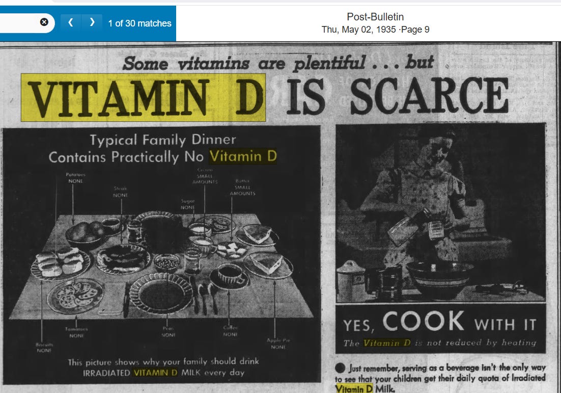 Next thing you know, synthetic vitamin D was bottled and was pushed hard in America despite no rickets outbreak.