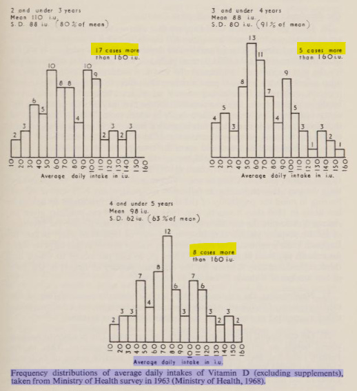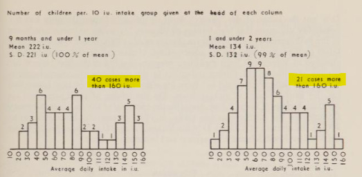 While all of this was going on, other pediatricians still disagreed with the entire thing. Not only were they not seeing rickets now, but they weren’t seeing it back then either. Then there were the doctors who claimed they did find rickets in some children, but firmly expressed it was due to “poor buildings, polluted atmosphere, and other causes”. It had nothing to do with sunlight or lack of fortified foods. On this topic, the government made a quite interesting point: “The distribution of overt rickets in Britain appears to be in pockets, some geographical, some perhaps racial, existing in the midst of areas of apparent freedom from the disease. The report of the Glasgow pediatricians that rickets continues to be encountered in Glasgow is perturbing in view of the immense efforts made by the public health personnel of this city to reduce the incidence of rickets”. So, as you can see, after all this food fortification and testing, followed by ceasing mass testing, some children in poverty-stricken areas were still developing weak bones. (And note, they are dosing everyone in effort to save the few…)
