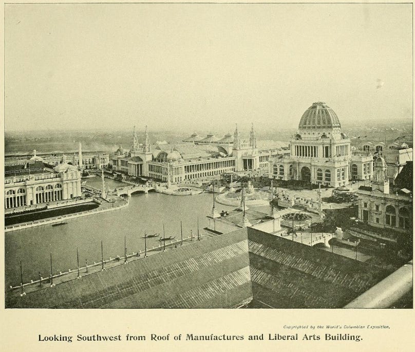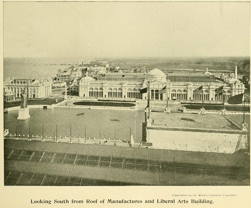 …the Chicago World’s Fair, also known as the “Columbian Exposition”, occurred in 1893. The event grounds spanned 700 square miles…