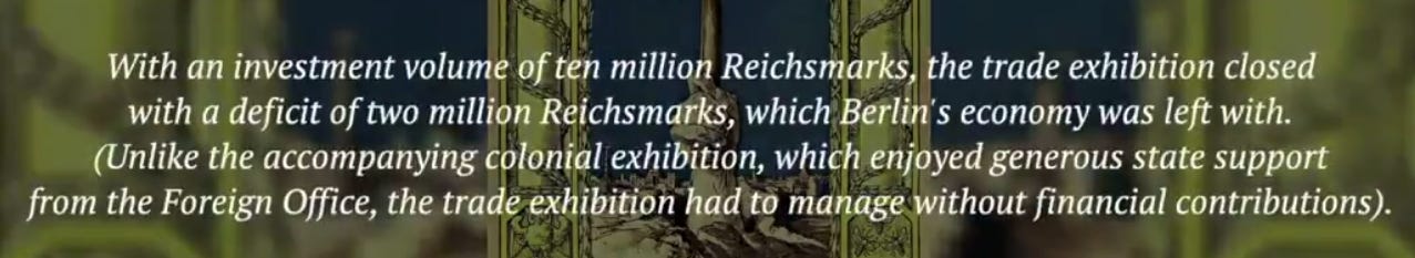 The Berlin World’s Fair left their economy with a debt of $2,000,000 Reichsmarks.