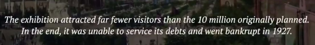 Let me show you an even more eyebrow-raising example: Paris threw a World’s Fair (Expo):