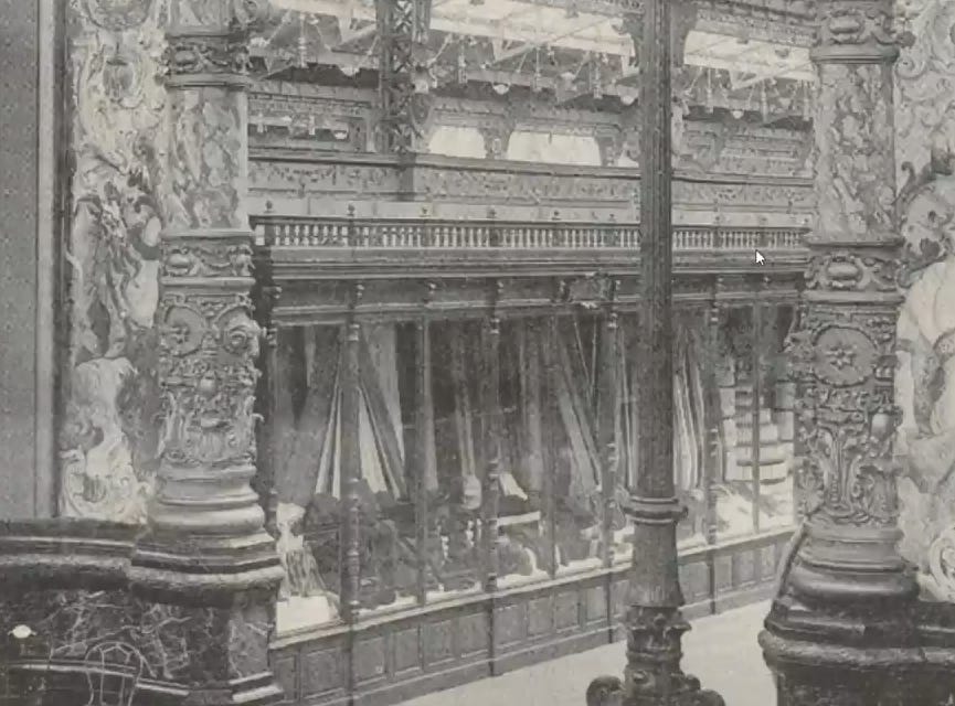 The building featured 5,000 lightbulbs and 5,000 lamps, 400 of which were used in the art gallery… in 1884… only two years after the very first installation of a power grid in America…