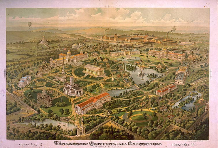 The Centennial Exposition was held in Nashville, Tennessee in 1897 and spanned 117 acres.
