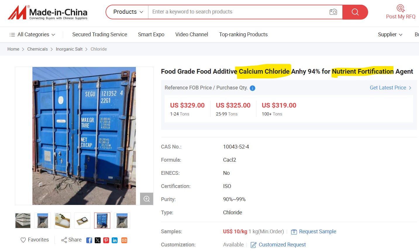 When it comes to fortification with Iron and Iodine, which is used to fortify salt, milk, bread, flour, sugar, grains and condiments the Codex-approved supplement options are iron sulphate (iron sulfate) or iron fumarate. We learned that Iron Sulfate is a byproduct from the steel pickling industry, meaning it is leftover waste. Lookie here, only $80 for 2,000 POUNDS (around 907kg) of “High Purity Iron Sulphate”! You can’t beat that deal!