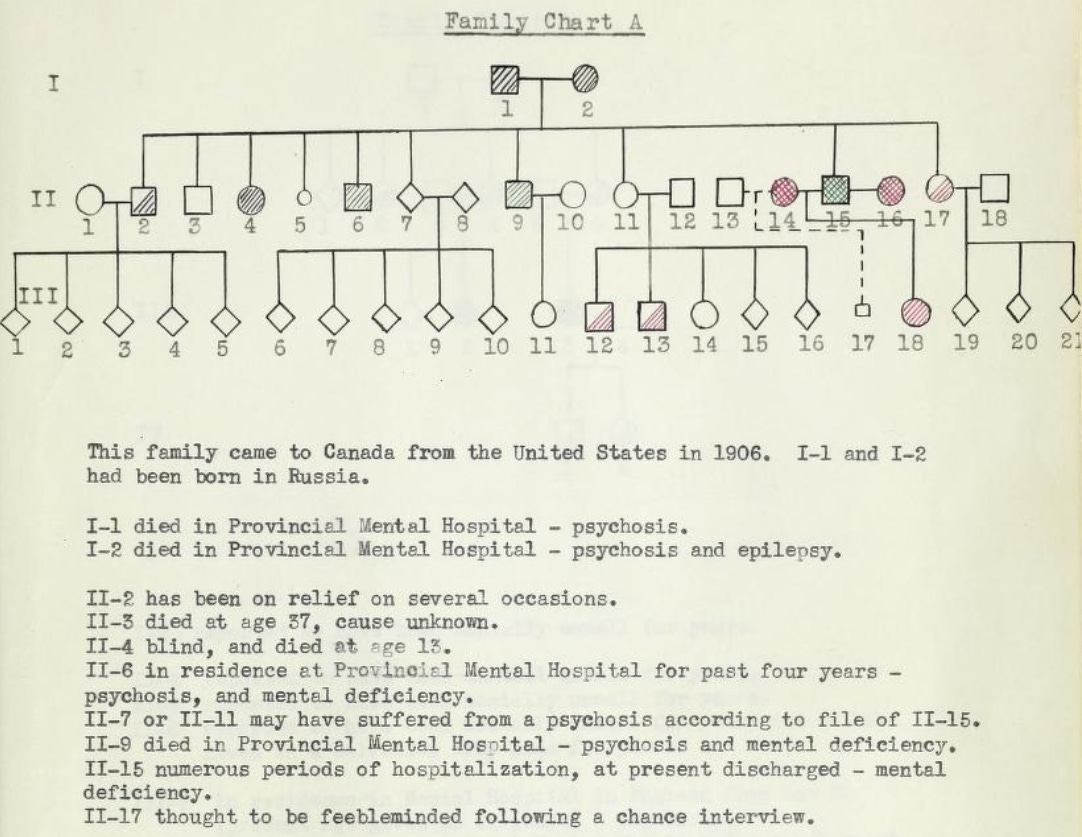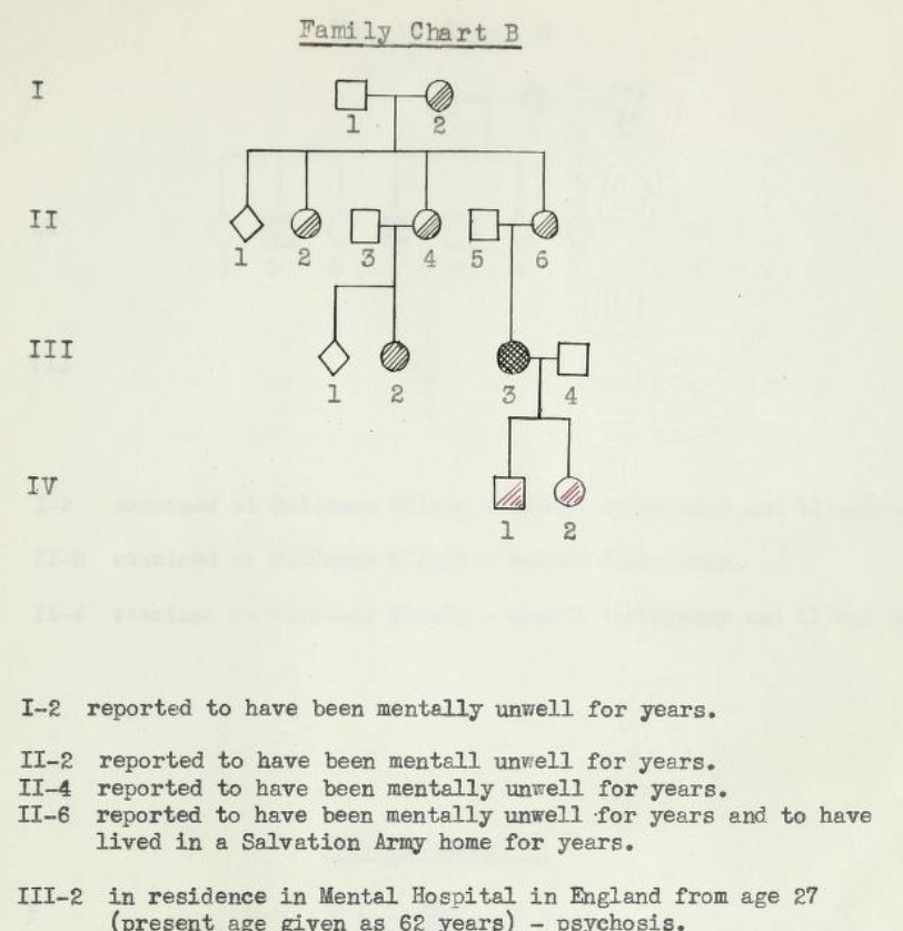 Per the Family Chart above, they notate that a symbol left blank does not mean the person “is free from mental disorders”. A blank symbol simply means they have not found anything to log, yet. By this logic, my children could be sterilized for my cousins actions.