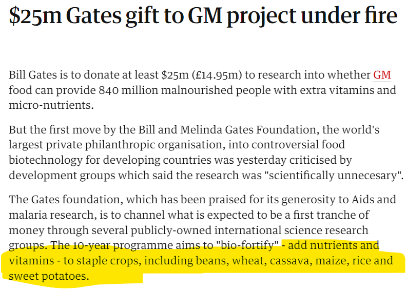 Gates is doubling-down on ensuring that everyone, everywhere, especially children and pregnant mothers have all the synthetic Vitamins, GMO crops and chemically fortified and enriched foods they need:
