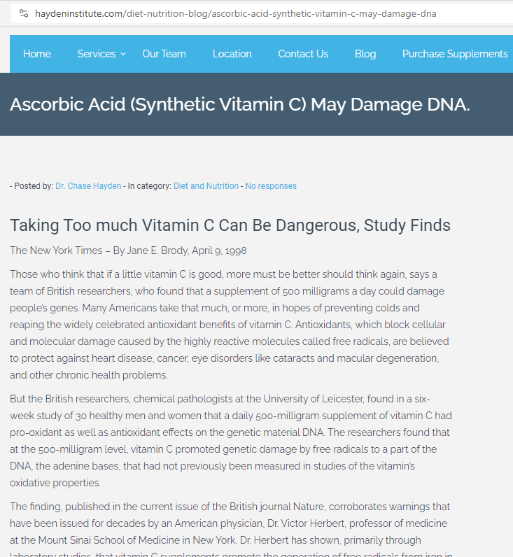 Keep in mind, this was in the 1980s, before Vitamins were mainstream, before the grocery store had a Vitamin aisle, and, at that time, nobody understood the purpose of ingesting these chemicals. So, to recap, we knew back then that Vitamin C wasn’t helping severe illness, let alone cancer, but this is long after it had become fact.