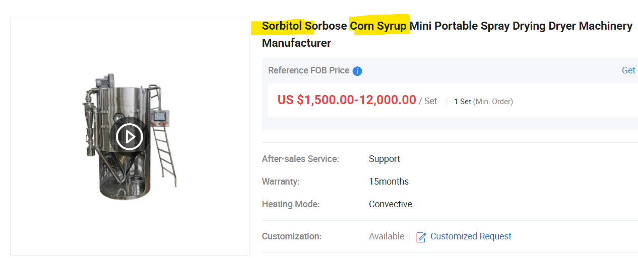 Here’s a “Sorbose Corn Syrup Portable Spray” machine thingy: