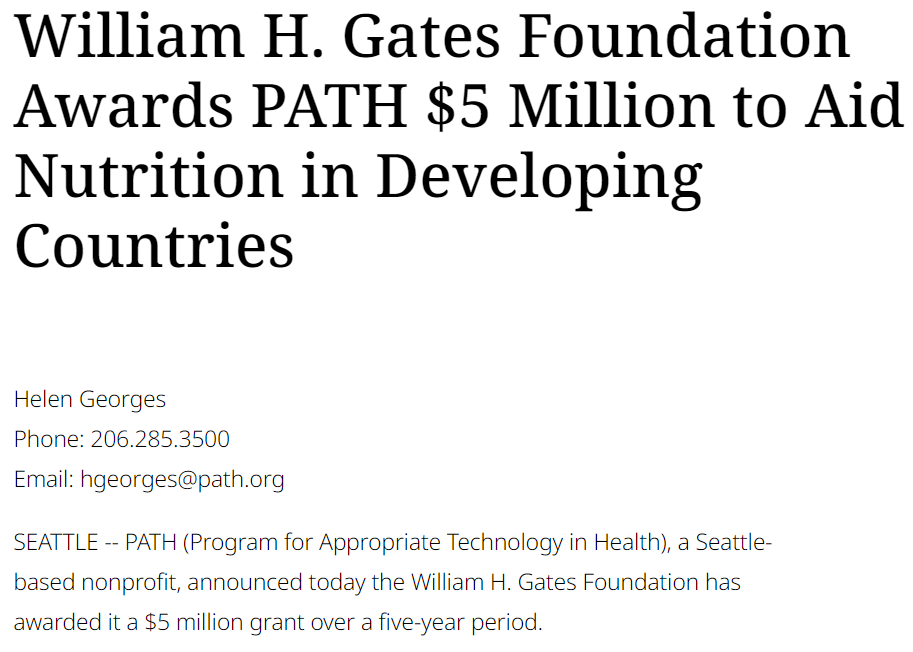 In 2021, the Gates Foundation announced a commitment of $922 MILLION over the next five years to address global nutrition. This grant will add “Vitamins” to salt, flour, and cooking oil and other staple foods in developing nations.