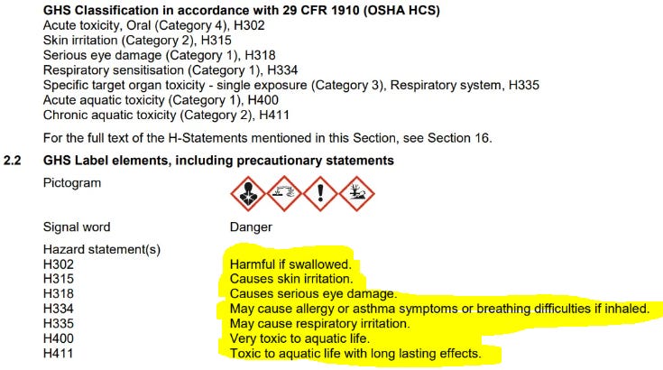 And here’s the MSDS for Subtilisin, which is the protein B. Subtilis makes :