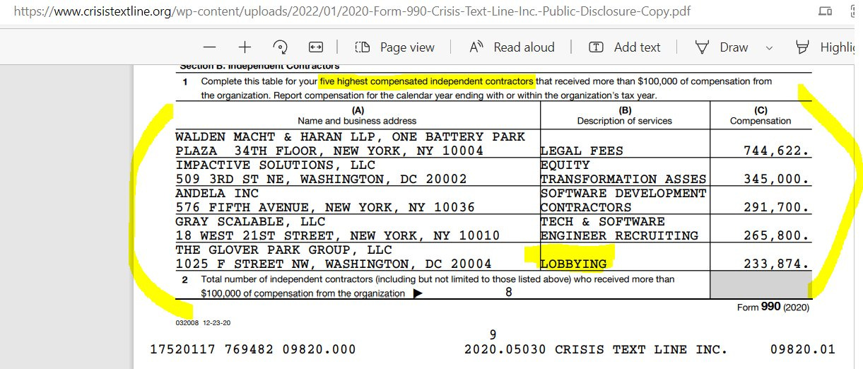 Now let’s go back to the 990 tax filings for CrisisTextLine.org to see what exactly the money is being spent on: