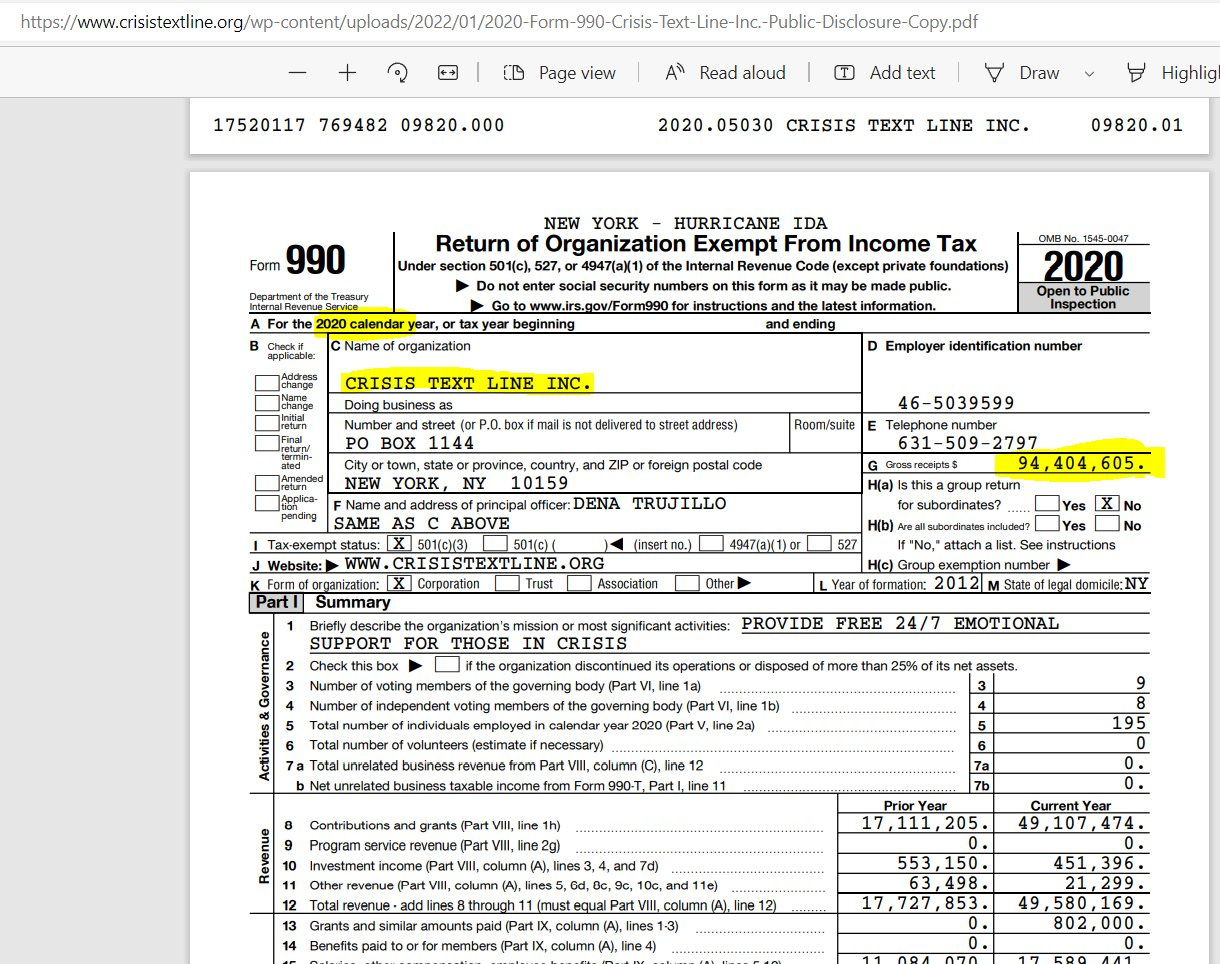 The text line has not shared their 2023 statement yet, but, from what we can see, this nonprofit has generated approximately $194 million in only eight years. So what exactly is going on here? Well…
