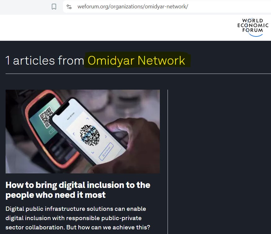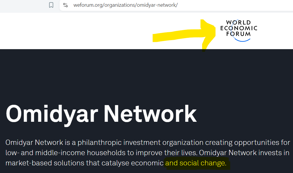 Perhaps you are wondering what specifically Omidyar means when they say social change? What they are referring to the full implementation of Digital ID and Digital Currency (which the WEF has been pushing hard for because Bitcoin was invented by the NSA):