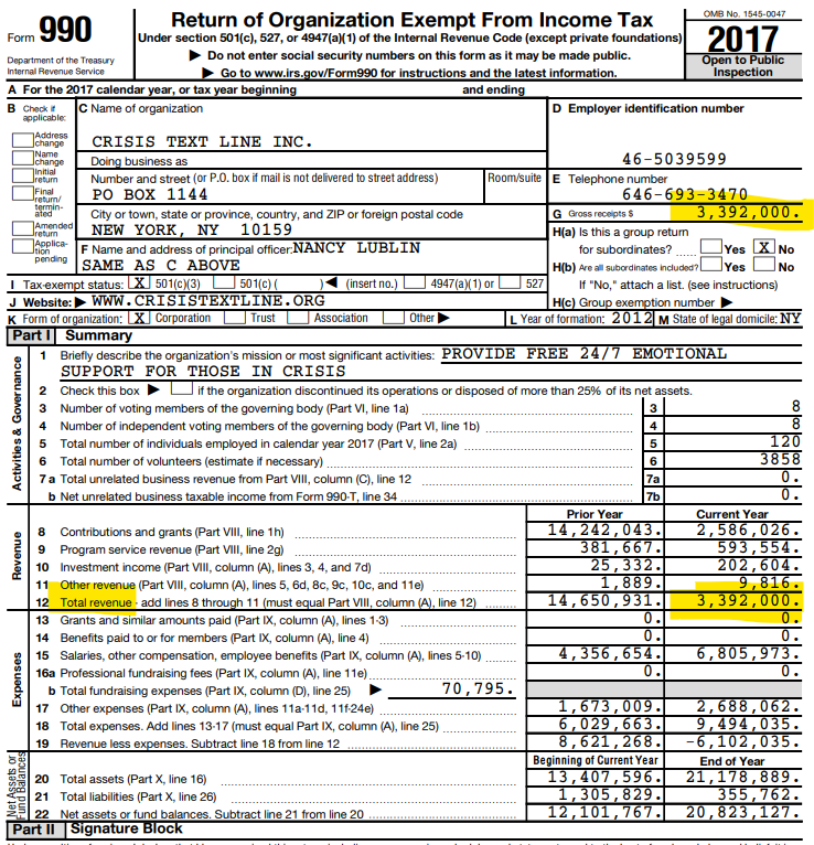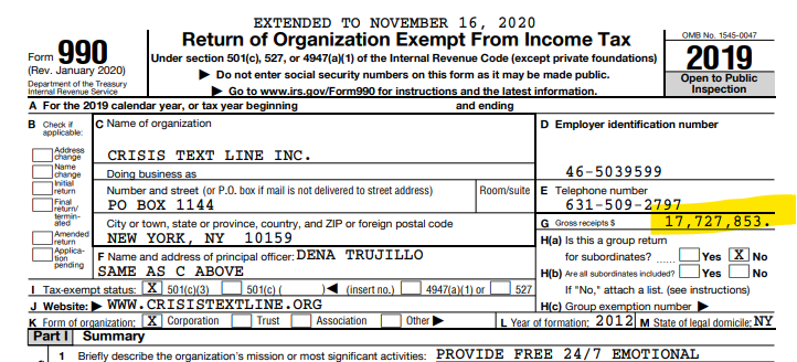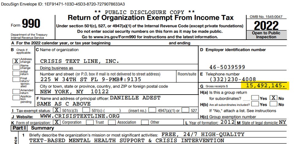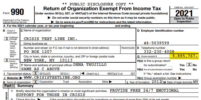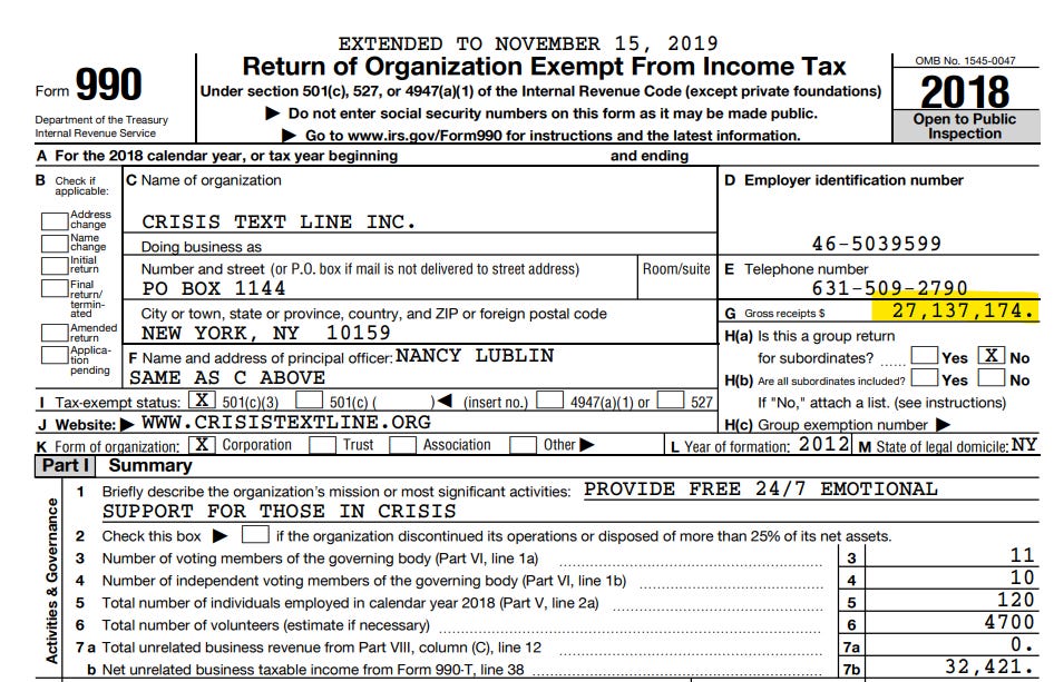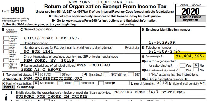 In 2019, the Crisis Text Line brought in almost $18 million: