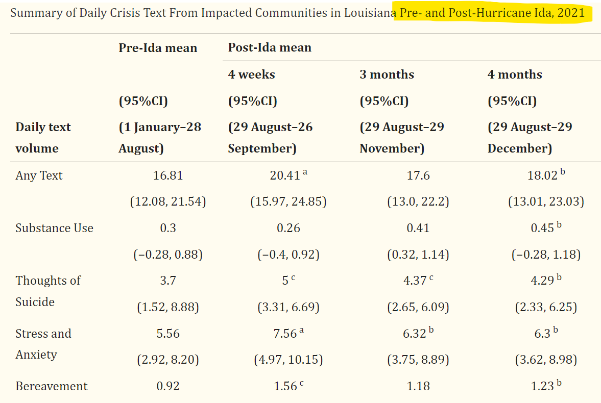 Experiment: Hurricane Ida’s Impact on Mental Health - through this experiment they learned that a Hurricane leads people to be emotional, experience higher-than-normal levels of stress and anxiety, which can lead to drug use and contemplation of suicide, in addition to feeling the pain of loss:
