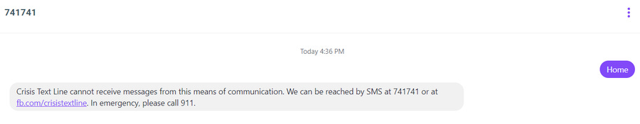 Being that I never use my real phone number for investigating, I created a free phone number using Pinger. After making the disposable number, I clicked the Covid Crisis Hotline link and followed the directions; text the word "HOME" to "741741":