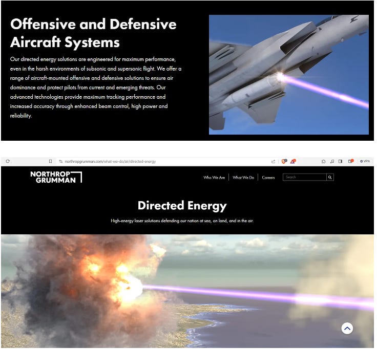 We all (including myself) suspected that Directed Energy Weapons (DEWs) were used in Hawaii, which, we suspected, were mounted to airplanes. These images are from US Military Defense Contractor Northrop Grumman (who develops DEWs):