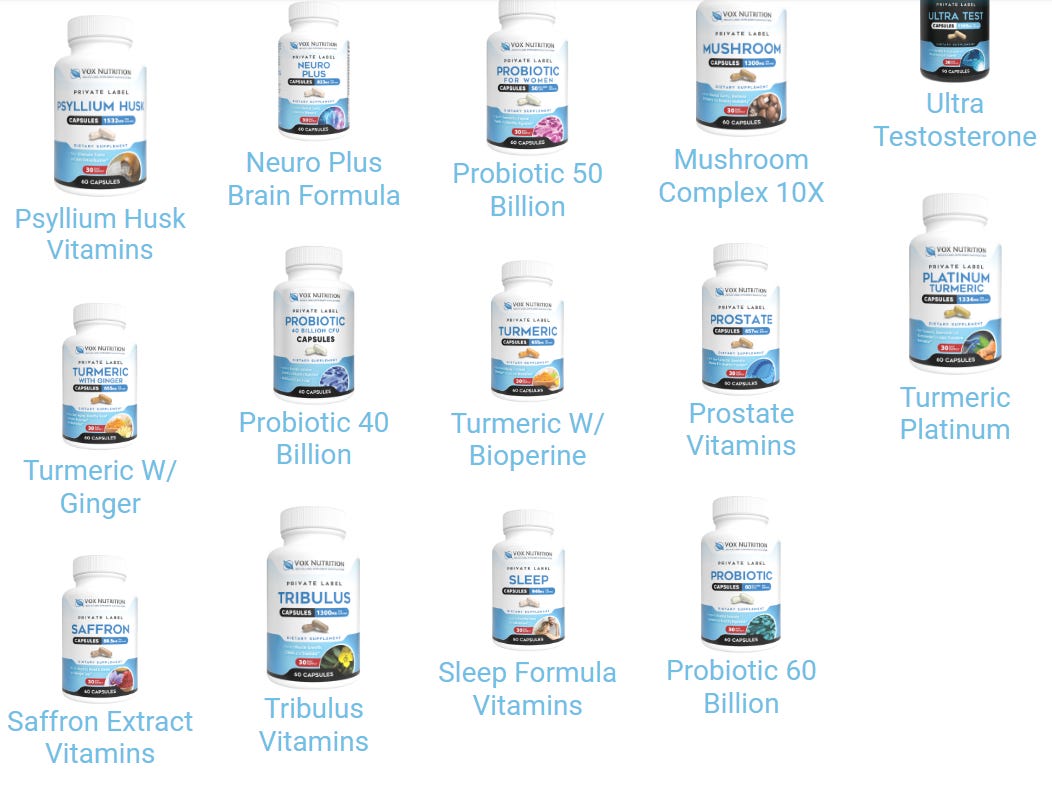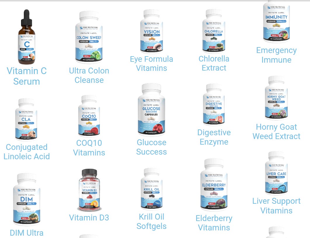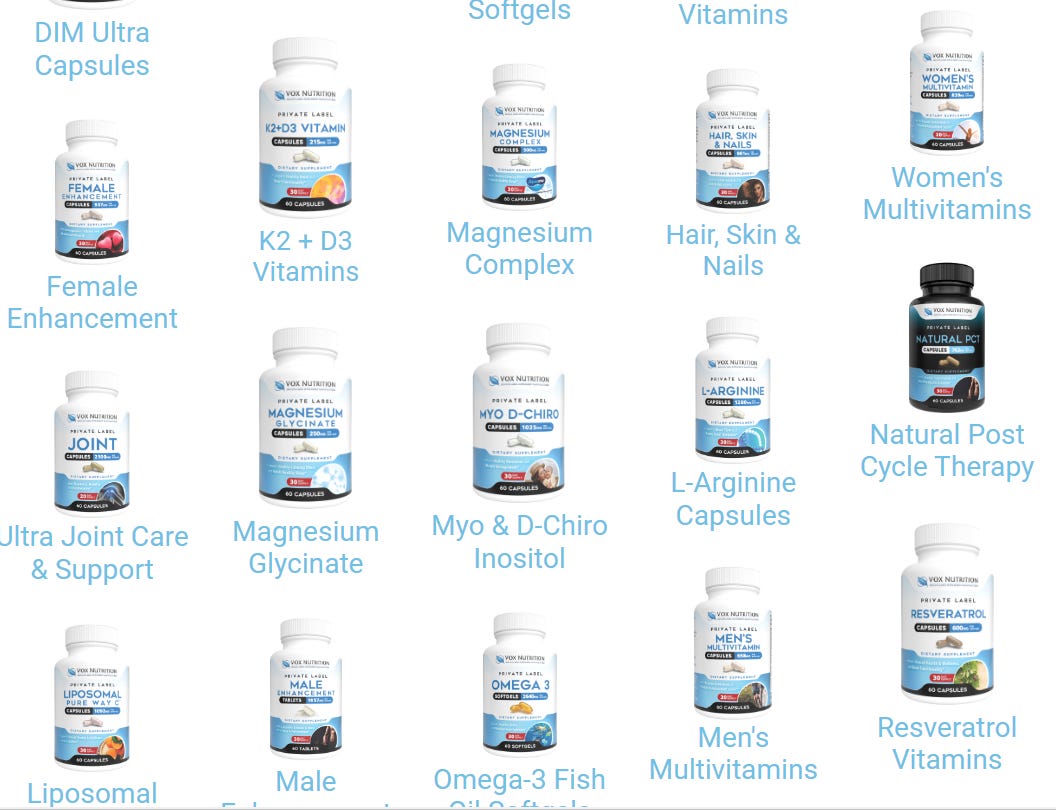 This means, tomorrow morning, you can pay the same factory to slap your brand name on the exact same Vitamins that the Some-Doctor-I-Love-on-Some-Podcast-I-Listen-to is selling.
