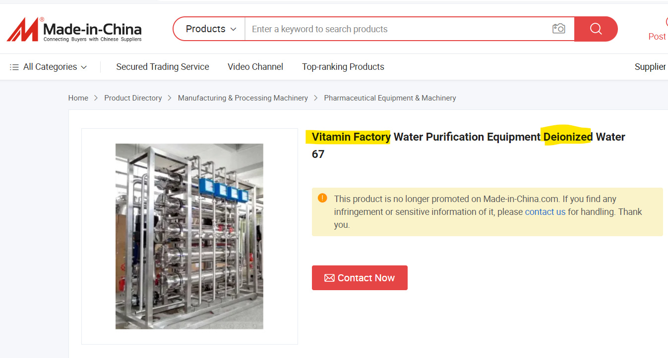 A deionization water purification system is required to remove sand, blast the vitamin-water with UV to sterilize it, then run it through reverse osmosis to clean it even more (but somehow the vitamin stays in the water?)…: