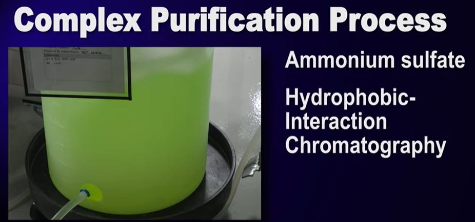 And Purification, which involves running it through a bunch of machines, adding chemicals and adding a new “buffering solution” chemical compound